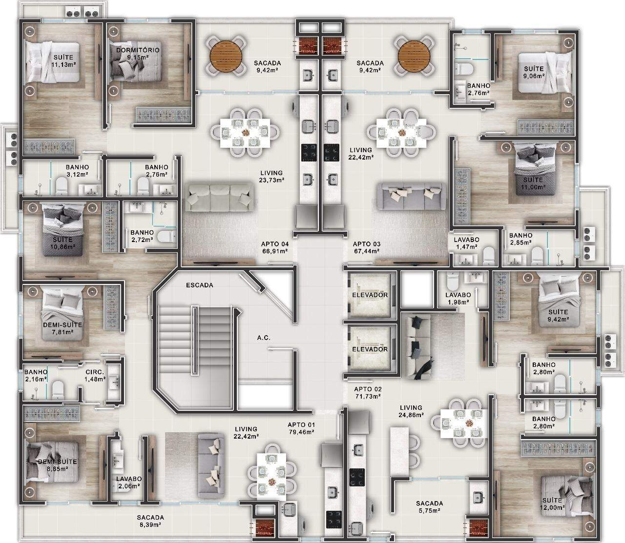 79,46m² privativos