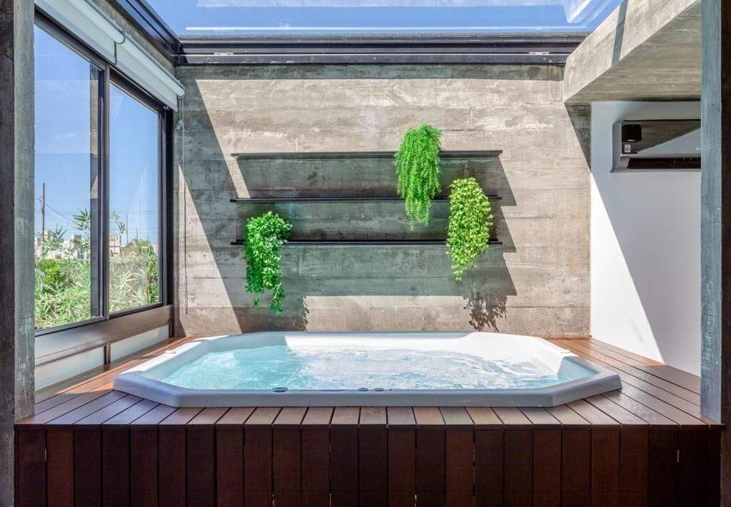 Área gourmet com jacuzzi e teto retrátil