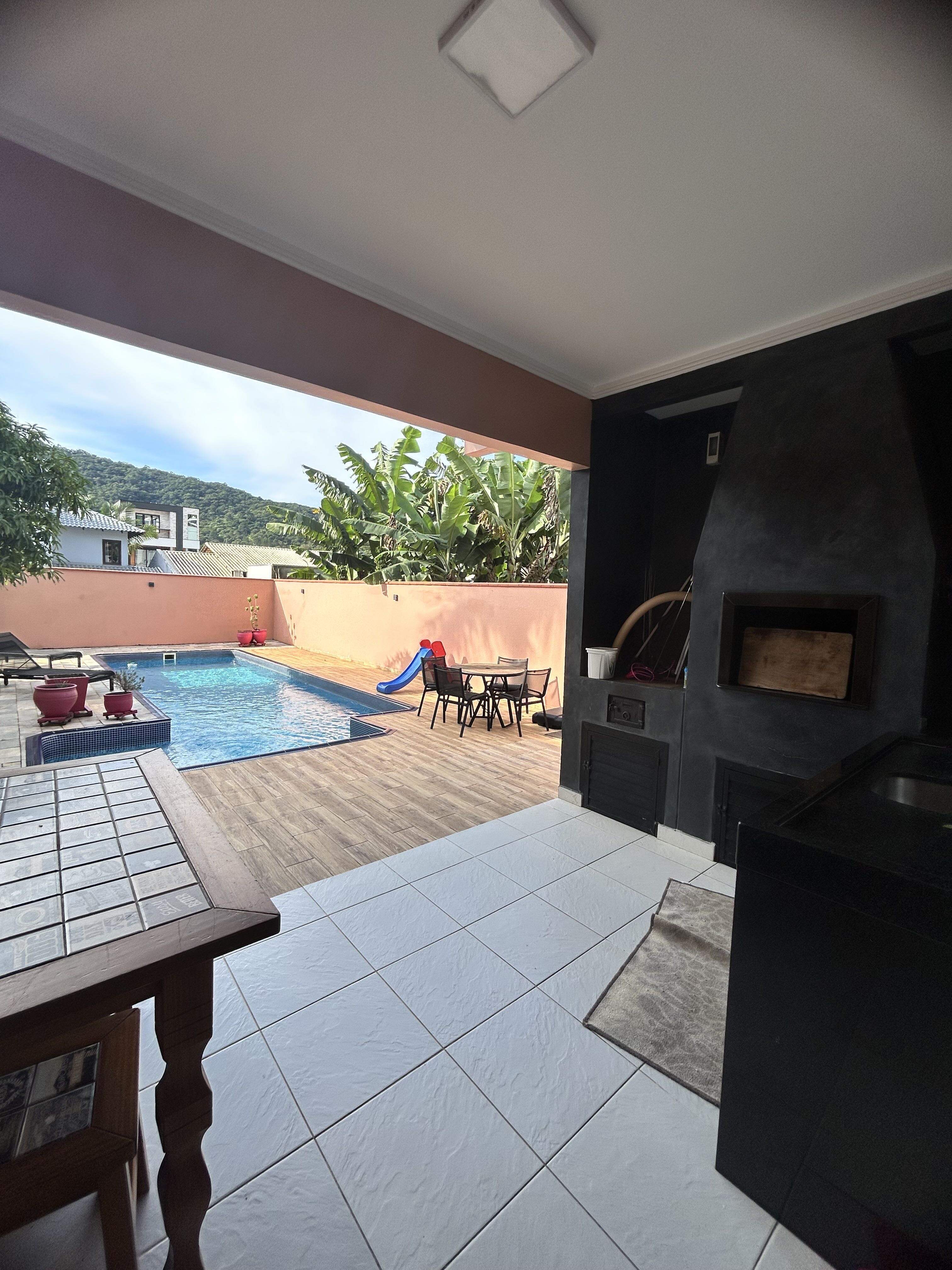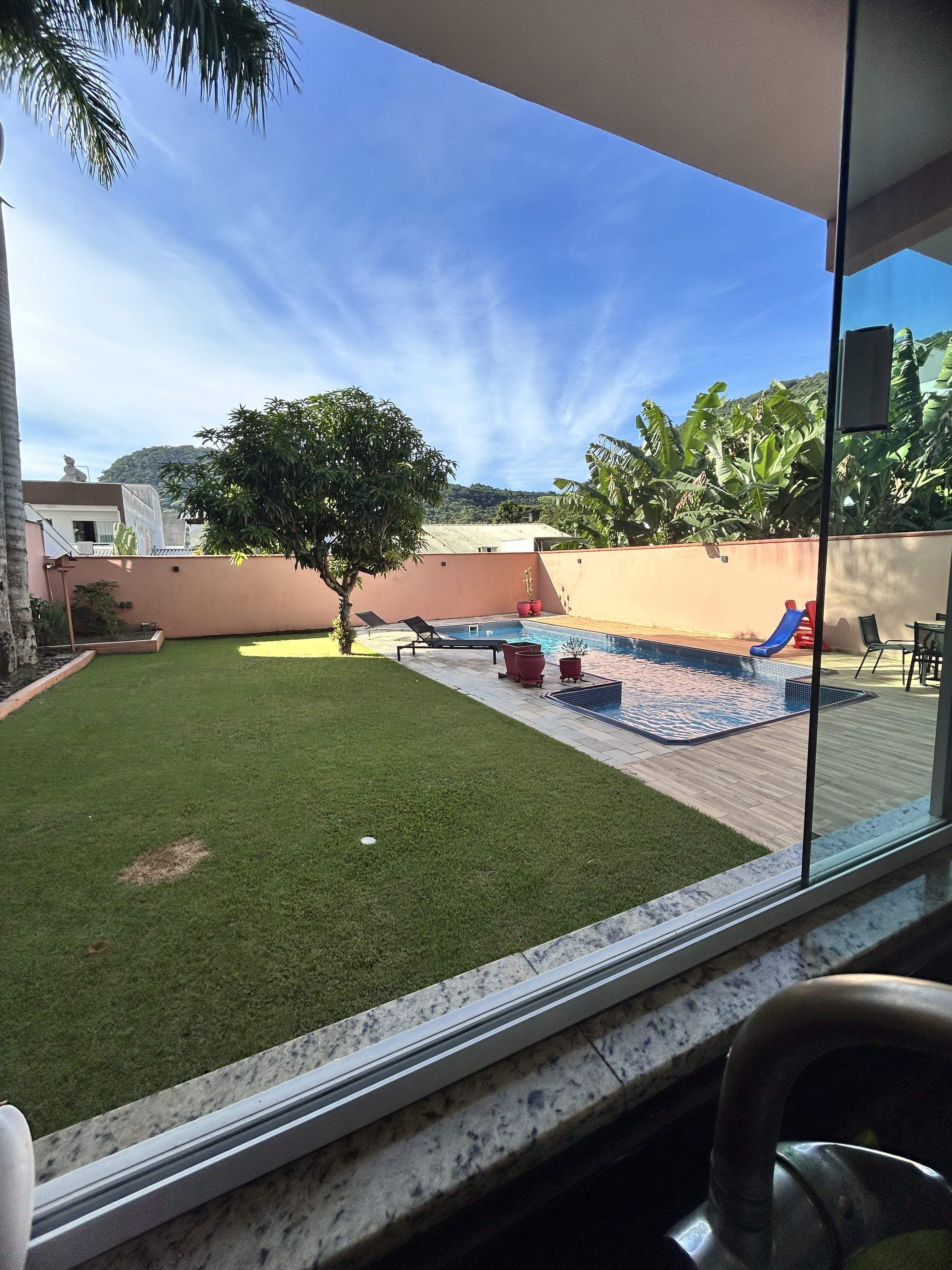 Piscina e quintal com gramado
